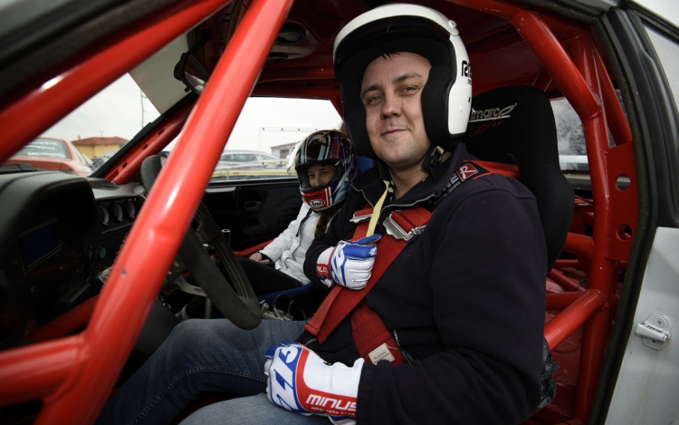- A szabadedzés első méterein kiderült, hogy nem tudunk tempót menni, mert megállni és elkanyarodni sem tudunk. A száraz pályára való gumink, a nedves kakucsi pályán úgy viselkedett, mintha jégen autóznánk. Amíg nem száradt fel az aszfalt, kb.: az első mért kör végéig, addig a barátnőmmel (aki egész nap az utasom volt), csak drifteltünk a pályán. A kategória első helye helyett inkább az élvezetre és a látványra mentünk.